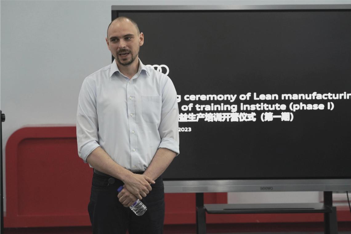 培训学院经理Gergely在动员讲话中表示,希望通过此次培训,大家能够学有所得,并将学到的知识运用到未来的实际工作中。培训师王波、郑治分别向学员们阐述了精益生产课程设计的思路及预期效果。