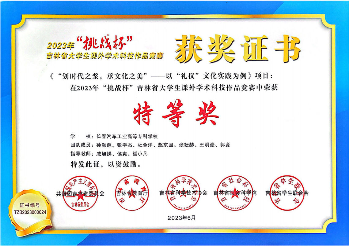近日,由吉林省关心下一代工作委员会、共青团吉林省委、吉林省教育厅、吉林省社会科学院、吉林省科学技术协会、吉林省学生联合会主办,北华大学承办的“青春筑梦 科创报国”2023年“挑战杯”吉林省大学生课外学术科技作品竞赛颁奖典礼暨大学生社团文化主题巡展活动在吉林市人民大剧院举行。