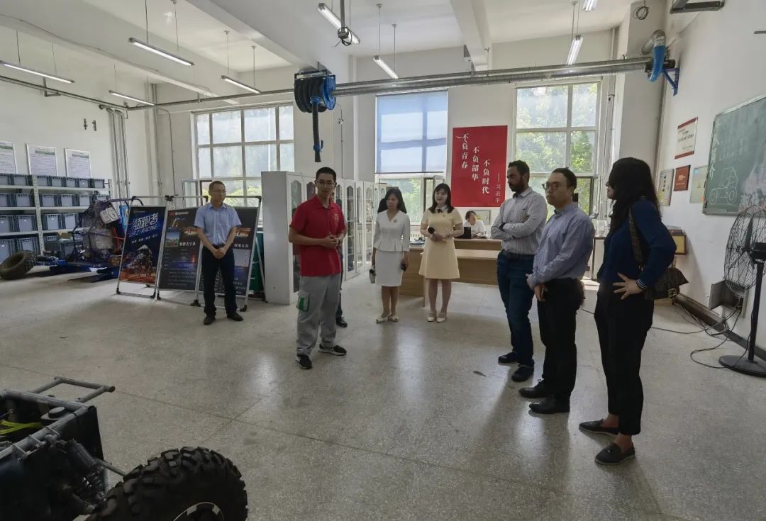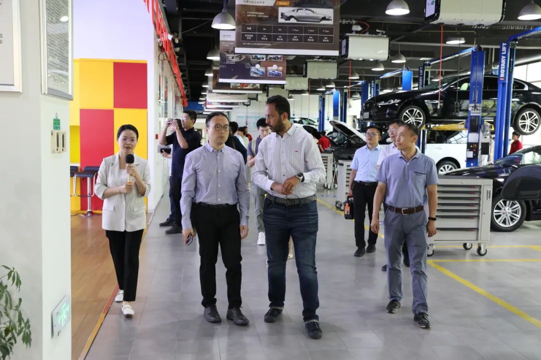 代表团一行先后到我校智能制造协同创新中心、汽车智能技术实训区、汽车造型技术实训区、捷豹路虎实训区、AHK实训基地、融媒体中心、红旗营销实训基地、奥迪新能源基地等实地参观踏查。在详细了解学校人才培养模式、校内外实训基地情况后,代表团对我校教培一体、产教融合的办学特色及成果给予充分肯定和高度评价。