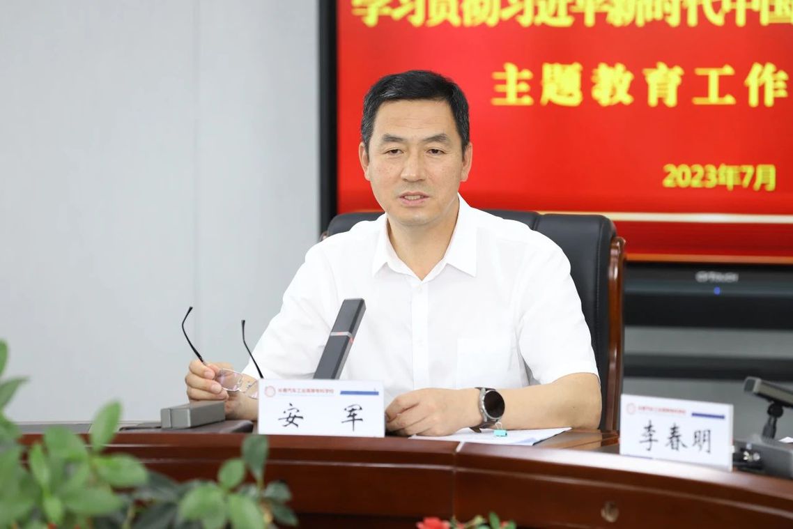安军在会上传达了市委书记张恩惠同志在全市学习贯彻习近平新时代中国特色社会主义思想主题教育工作推进会上的讲话精神,通报了学校主题教育工作整体进展情况并就下一阶段工作进行了部署。安军指出,要深入学习贯彻习近平总书记重要讲话精神和党中央、省委、市委决策部署,高标准高质量抓好主题教育各项工作。一是坚持理论学习贯穿始终,及时跟进学习贯彻习近平总书记最新重要讲话和重要指示精神,做到学思用贯通、知信行统一;二是加速调研成果转化运用,形成调研转化运用成果清单,真正解决问题、推进工作,健全成果转化运用跟踪监管、综合考评机制,持续强化跟踪问效;三是推动改革发展行稳致远,全面落实吉林省“一主六双”高质量发展战略,努力实现吉林省职业本科建设零突破,在开创长春振兴发展率先突破新局面中展现职教担当;四是促进检视整改常态长效,加快推进整改整治任务取得决定性成效。对主题教育中形成的好做法好经验,及时以制度形式固定下来,推动学校工作提标、提速、提质、提效。