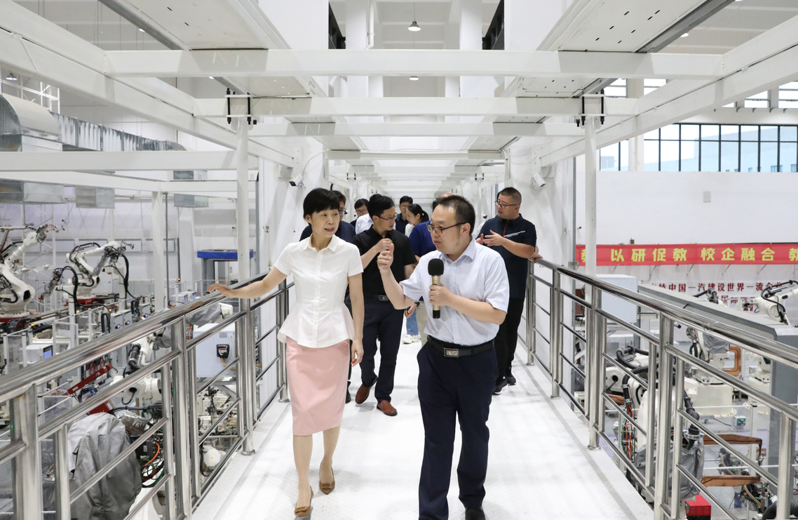 调研组一行参观了智能制造协同创新中心、汽车试验技术实训区、汽车造型技术实训区、汽车智能技术实训区、AHK实训基地,对我校实训基地建设及校企合作办学等方面取得的突出成绩给予高度赞誉。