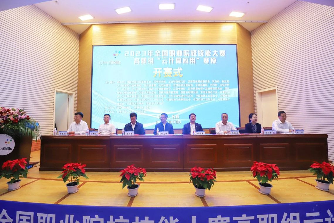 9月19日下午,2023年全国职业院校技能大赛高职组“云计算应用”赛项开赛式在长春汽车工业高等专科学校图书馆报告厅举行。吉林省教育厅党组成员、副厅长刘学军出席开赛式并宣布比赛正式开赛。