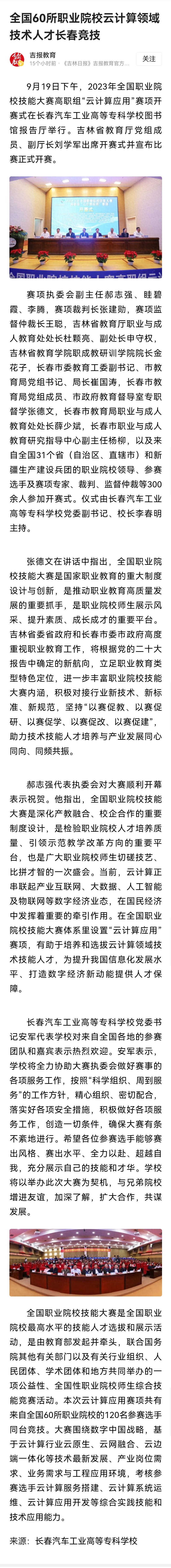 吉报教育——全国60所职业院校云计算领域技术人才长春竞技