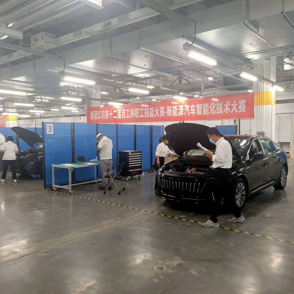本次比赛于8月中旬开幕,历时1个月,共计125人报名参赛。经过前期理论考试的角逐,9月10日,成绩排名前30的考生分三个批次先后进入实操考场比拼。本次比赛以红旗EQM5作为比赛用车,分为“电动汽车技术”“车身电气技术”“线控底盘技术”三个竞赛项目,参赛选手以精湛的技艺和扎实的基础展现了当代技能人才的风采。