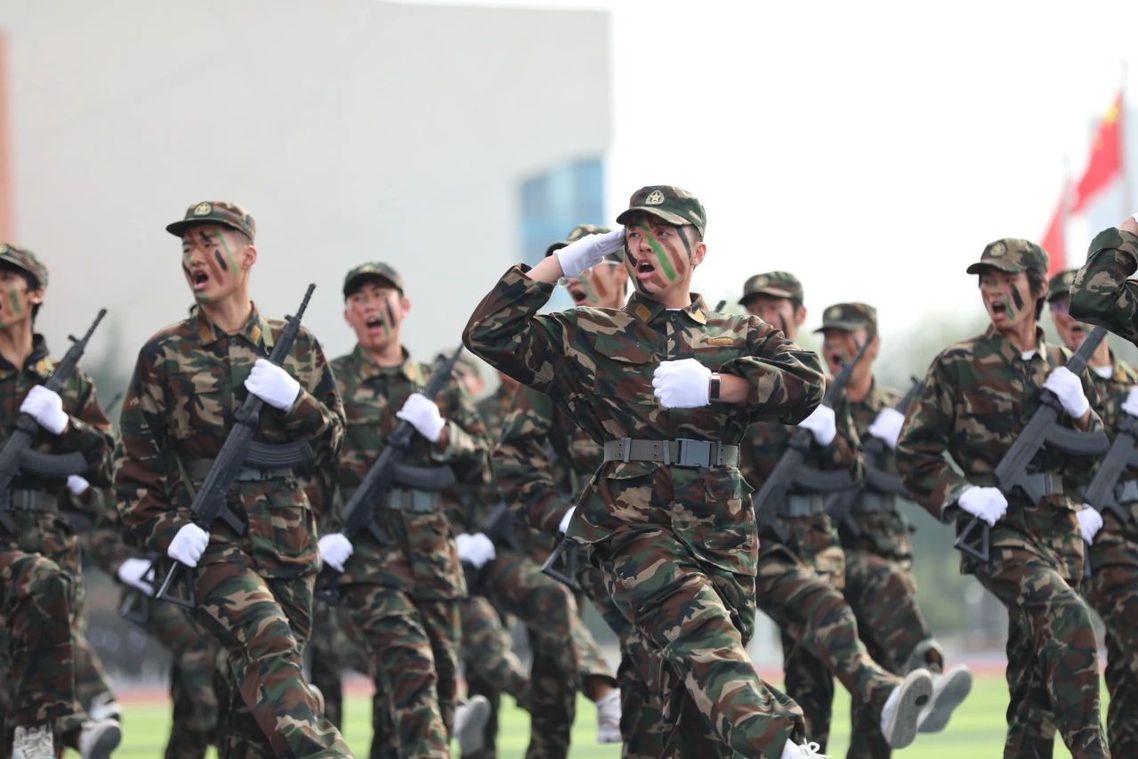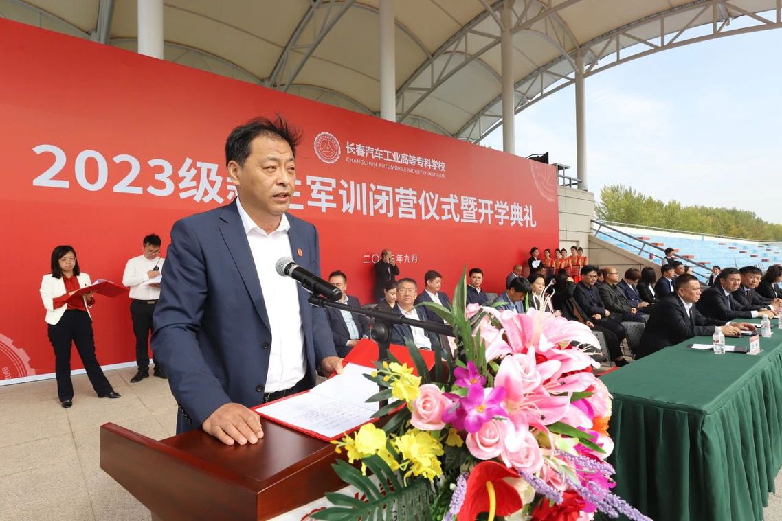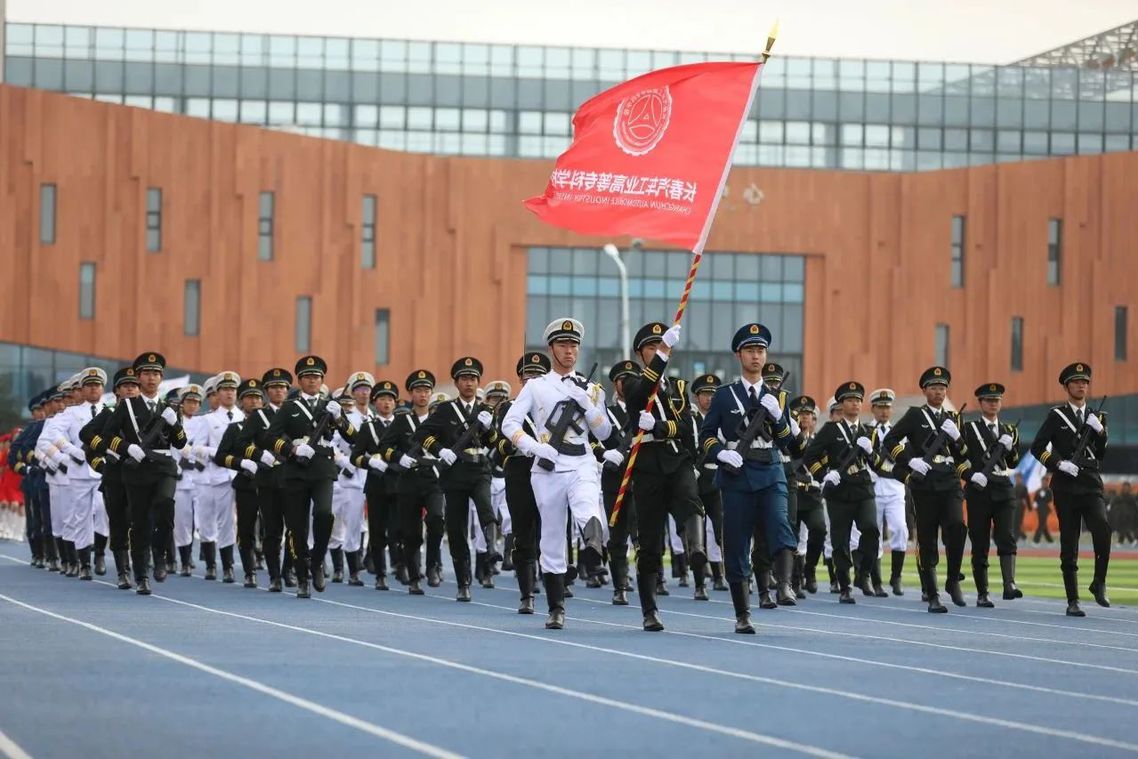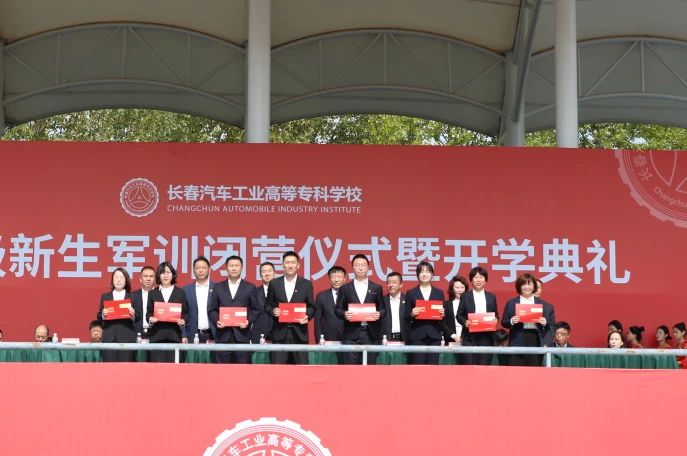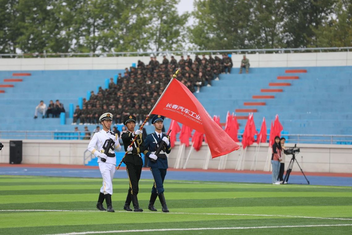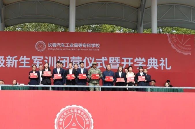党委书记安军在承训部队军训教官的陪同下检阅军训各方队。2023级学生迈着整齐的步伐,昂首挺胸走过主席台,展现了汽专学子积极向上、拼搏进取的精神风貌。