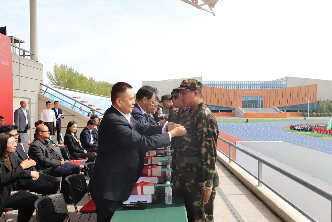 军训表彰环节,党委副书记赵娜宣读军训表彰决定,军训优秀方队、军事训练标兵、优秀军训教官、优秀带训辅导员等先后上台领奖。