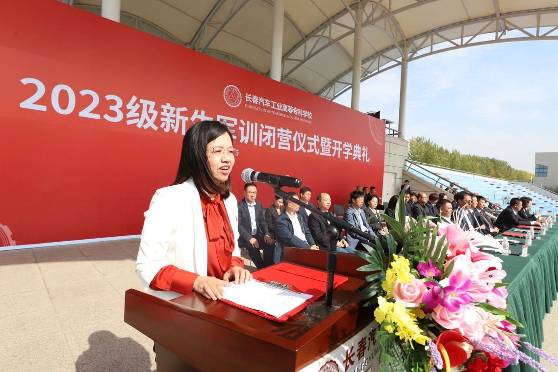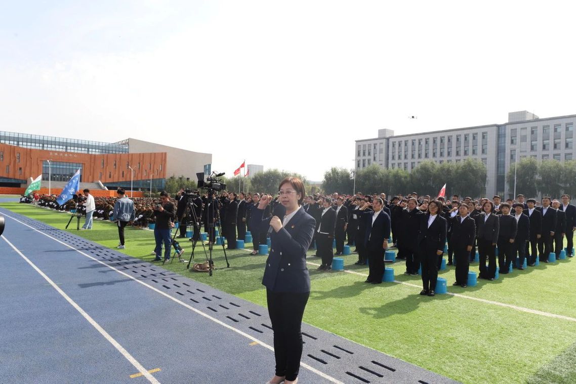 在开学典礼上,汽车营销学院院长任玲带领新教师进行入职宣誓,信息技术学院2021级学生吴嘉琪带领新生进行入校宣誓,铮铮誓言响彻全场。