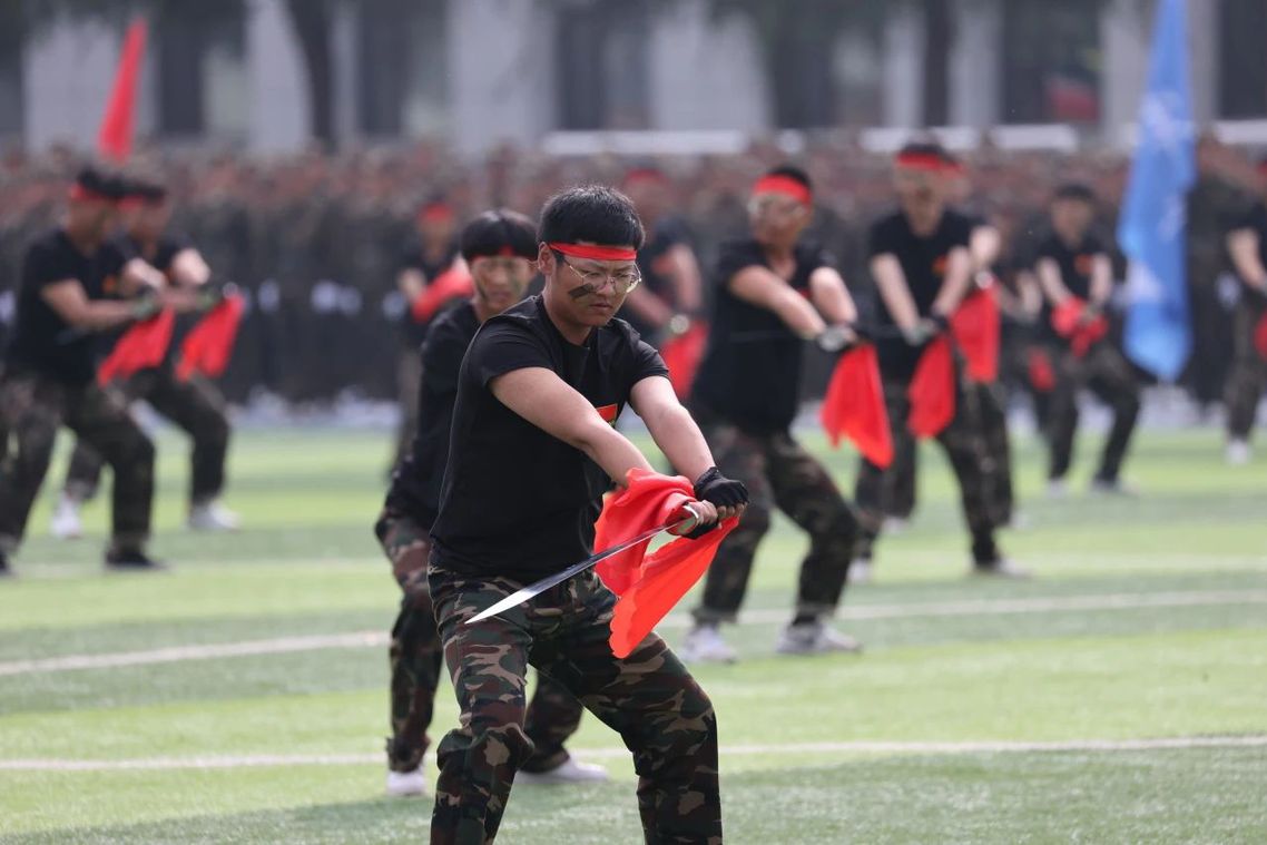汇报表演环节,同学们以饱满的热情依次在主席台前表演了大刀操、匕首操、军体拳等项目,展示20天的军训成果。他们招式凌厉、气势磅礴,以嘹亮的口号、挺拔的身姿、昂扬向上的精神面貌展现出汽专学子永远跟党走、青春筑国防的坚定信念。