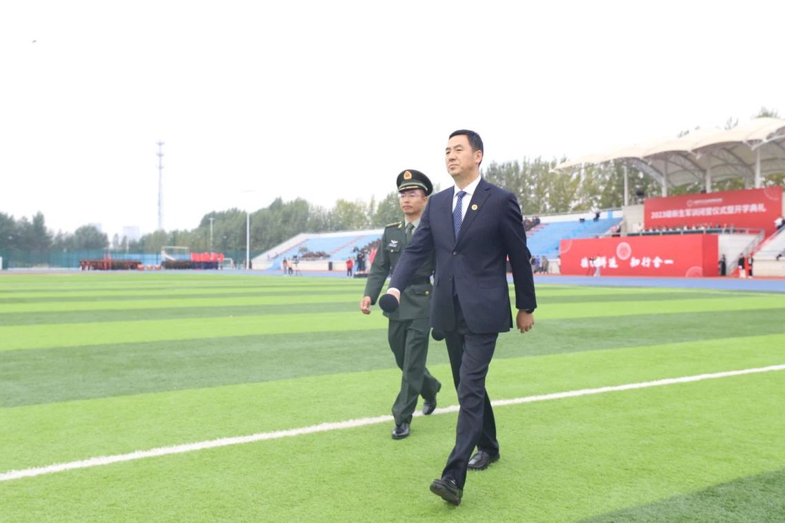 9月27日上午,我校2023级新生军训闭营仪式暨开学典礼在体育场隆重举行。承训部队副参谋长,校领导安军、李春明、胡国良、丁卓、王学山、韩萍、赵娜、张勇忠出席仪式,各院部负责人、教师代表、承训教官及2023级全体新生参加仪式。