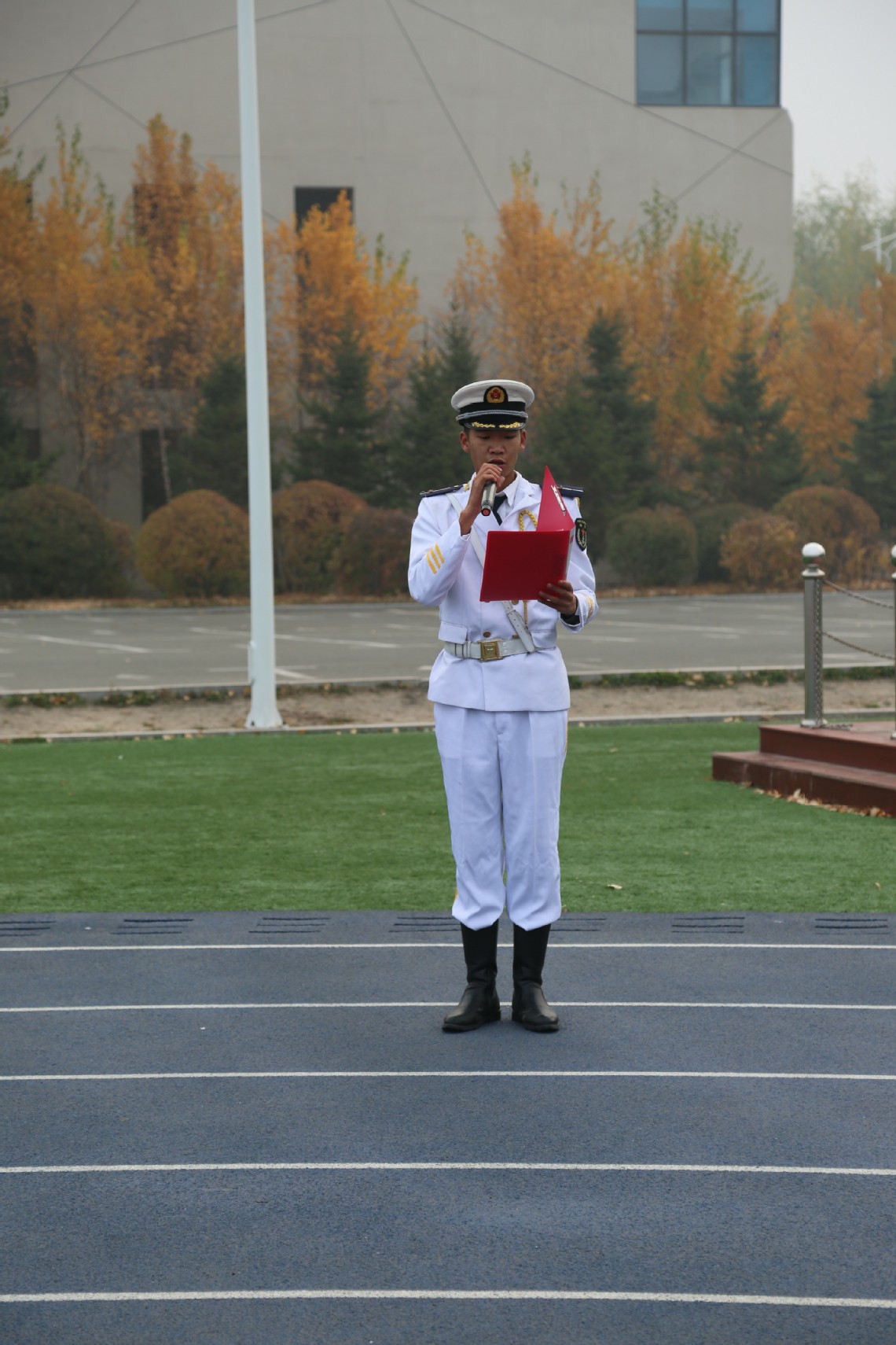 升旗仪式上,学院2022级退伍大学生、优秀教官助理张洪涛同学进行了以“铭记历史,继往开来”为主题的演讲,倡导全体同学要以革命先烈为榜样,弘扬革命精神,立志做有理想、敢担当、能吃苦、肯奋斗的新时代青年。