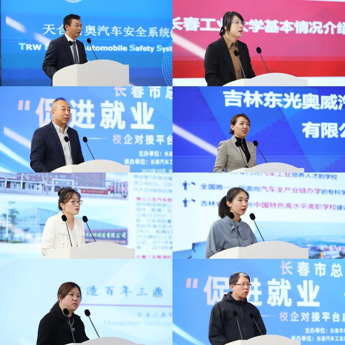天合富奥汽车安全系统(长春)有限公司、长春工业大学、吉林东光奥威汽车制动系统有限公司、长春科技学院、长春三友汽车部件制造有限公司、长春汽车工业高等专科学校、长春三鼎变压器有限公司、长春市机械工业学校8家企业和院校代表进行了推介发言并签订促就业促用工协议。