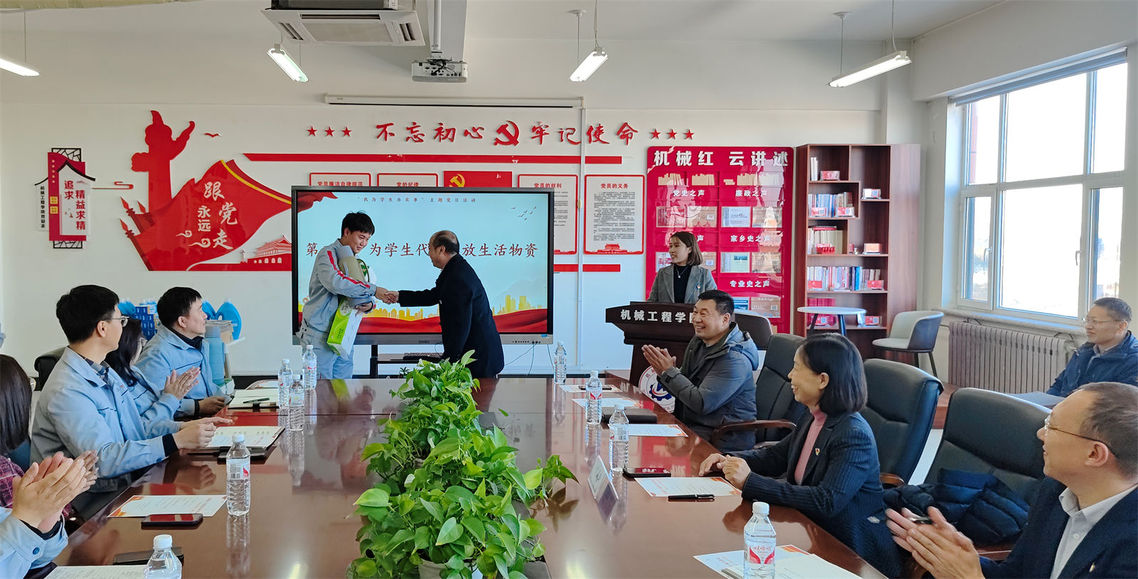 活动上,党员教师为学生代表赠送学习及生活备品。