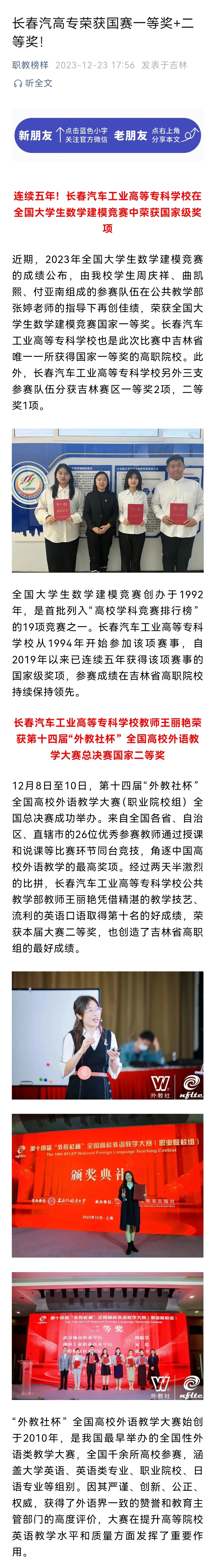 职教榜样——长春汽高专荣获国赛一等奖+二等奖!