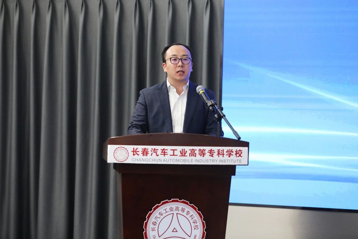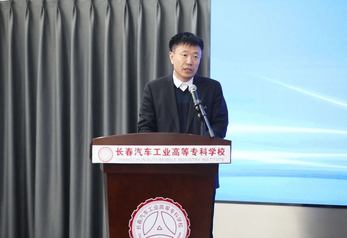 李春明在致辞中介绍了学校与一汽弗迪校企合作项目的现实意义和发展愿景。李春明表示,双方将在专业设置、师资队伍建设、实训基地建设、科研创新等方面深度合作,充分发挥各自优势,实现资源共享、成果转化,奋力谱写吉林省全面振兴新篇章。
