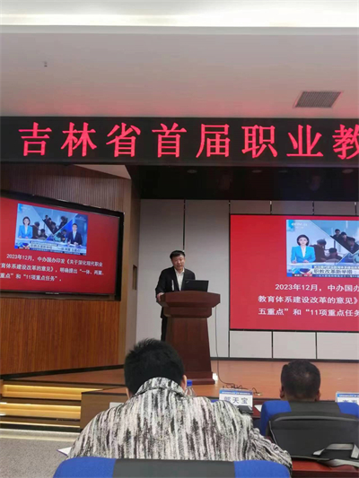 4月12日上午,吉林省首届“三融”创新发展研讨会在吉林交通职业技术学院召开。大会围绕“现代职业教育‘三融’发展”主题,聚焦推动吉林省职业教育高质量发展,来自全省各职业院校和各级教育行政部门的相关领导出席会议。我校党委副书记、校长李春明受邀出席会议,并在大会上作题为《政企校协同 科产教一体,打造市域产教联合体样板》的典型发言。