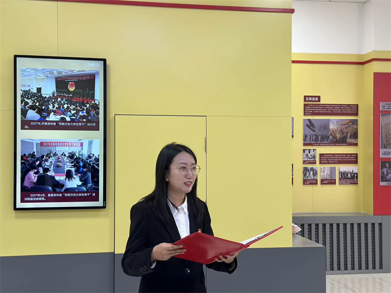 开班仪式结束后,全体学员在吉林青年运动史馆讲解员的带领下,共同学习了“五四运动”以来吉林青年运动的历史。大家纷纷表示,通过本次参观学习,对吉林青年运动史有了更深入的了解,对自己的时代使命和责任担当有了更深刻的体会,将在五四精神的激励下,树立与新时代同心同向的理想信念,厚植家国情怀,青春心向党,建功新时代。