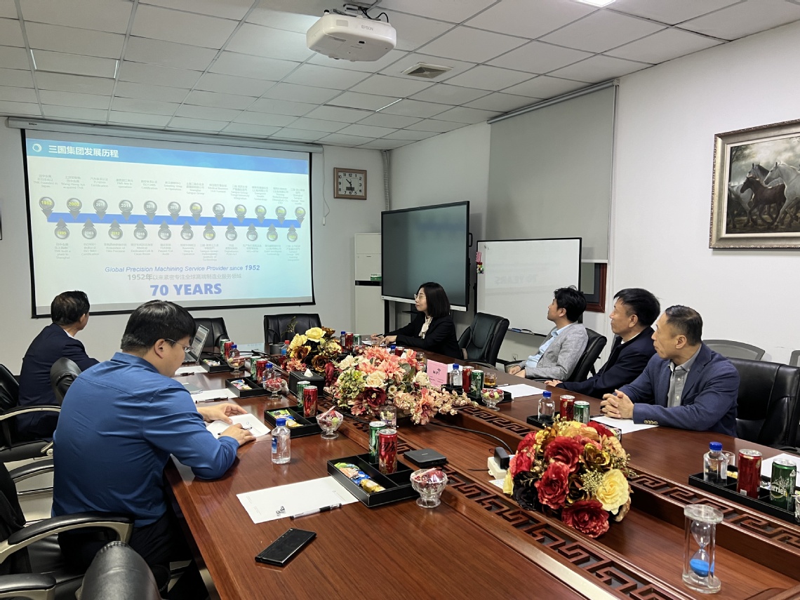 李春明一行先后走访了上海三国集团位于昆山的苏州伊徕尔特精密机械有限公司和上海的田中金属加工(上海)有限公司,听取了上海三国集团董事长王洪军介绍企业的发展历程和在生命科学、汽车工业、工程液压、轨道交通、质量管理体系、高端数字化智能制造、高端FMS柔性数字化智能制造、高端五轴数字化智能制造、高端智能数字化检测设备及德马赫产业学院等领域所取得的成就。