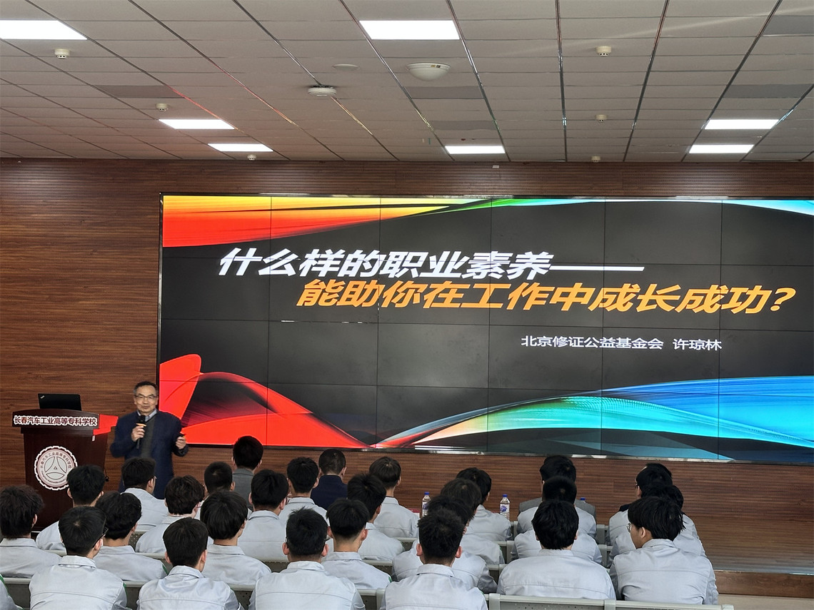 据介绍,“职业素养教育进院校工程”系列公益帮扶活动由中国汽车工程学会、全国汽车职业教育教学指导委员会、北京修证公益基金会联合开展,旨在提升汽车相关专业院校的职业素养教育教学水平。我校是该项目的第25所公益教学点。