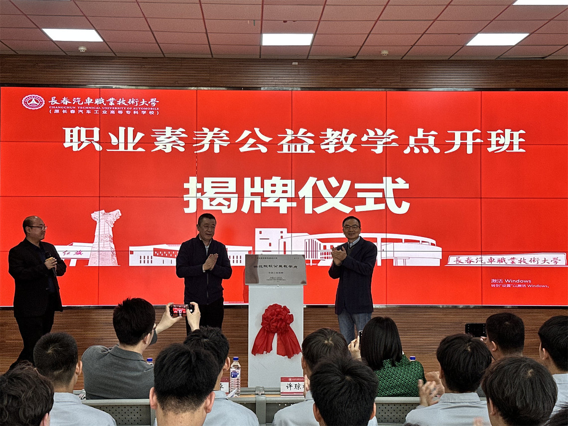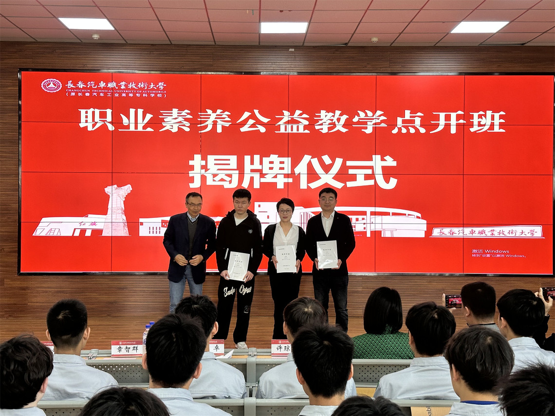 4月25日,我校在汽车工程学院举行“职业素养教育进院校工程”公益教学点揭牌仪式。北京修证公益基金会理事长许琼林、中国汽车工程学会汽车应用与服务分会副秘书长章智群、北京修证公益基金会秘书长刘寅峰、学校副校长丁卓出席活动。汽车工程学院院长王立超、汽车工程学院教师及3名职业素养课程导师和60名第一期教学点学习学生参加活动。