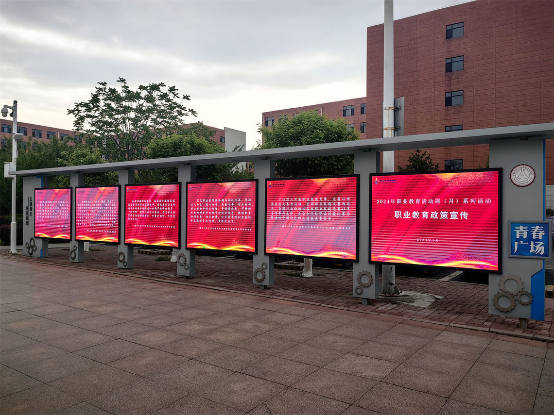 青春广场电子宣传屏循环播放职业教育政策的相关内容,涵盖了职业教育的各个方面,包括专业设置、教学管理、实习实训、就业创业等方面,详细介绍了国家对于职业教育的扶持措施和未来发展规划。通过这些政策的宣传,让更多的师生了解发展职业教育的重要性和国家对于职业教育的高度重视。