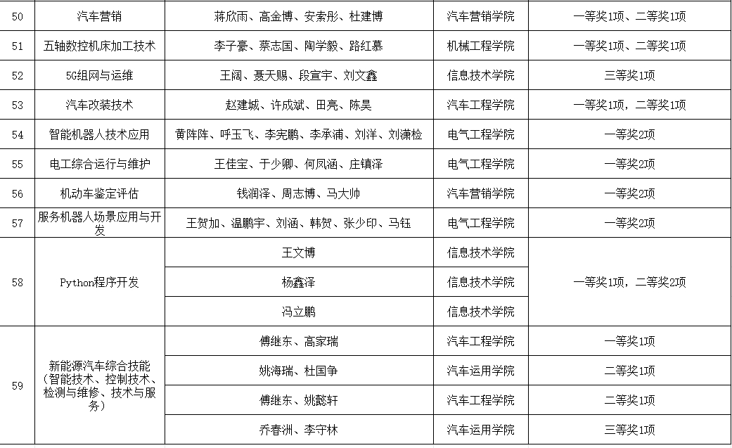 近日,2024年吉林省职业院校技能大赛圆满落幕。作为省内最具权威性和影响力的技能大赛,本次大赛吸引了众多职业院校的积极参与,我校参与了60个高职组赛项,共斩获一等奖43个,二等奖48个,三等奖40个,成果丰硕,收获喜人。图片