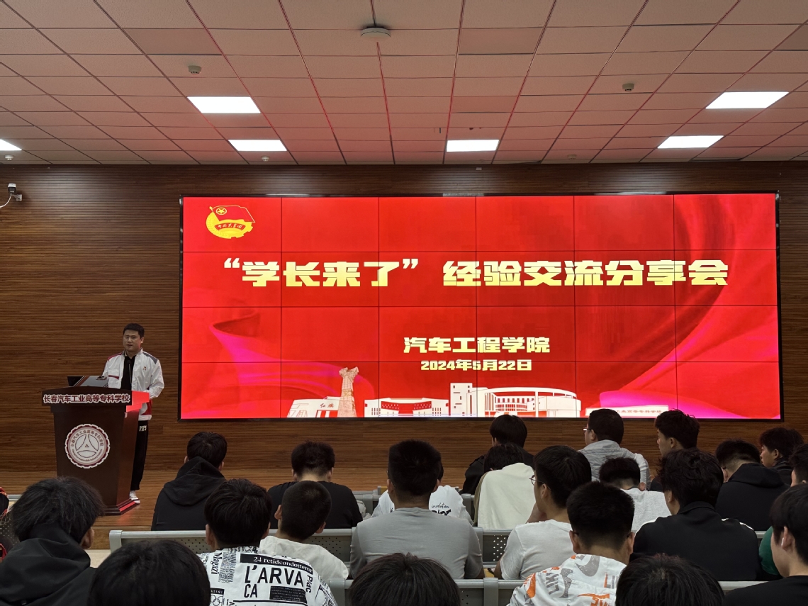 为贯彻落实《吉林省教育厅关于做好2024年职业教育活动周职业教育宣传月工作的通知》,宣传展示汽车工程学院专业建设成果与特色,大力宣传劳模精神、劳动精神、工匠精神,弘扬劳动光荣、技能宝贵、创造伟大的时代风尚,5月22日,汽车工程学院开展“学长来了”朋辈领航活动,活动邀请2021级两位优秀学长王立博、贾博凯进行经验分享。2023级学生干部、入党积极分子、青马班学员参加了本次活动,活动由2023级辅导员李爽主持。