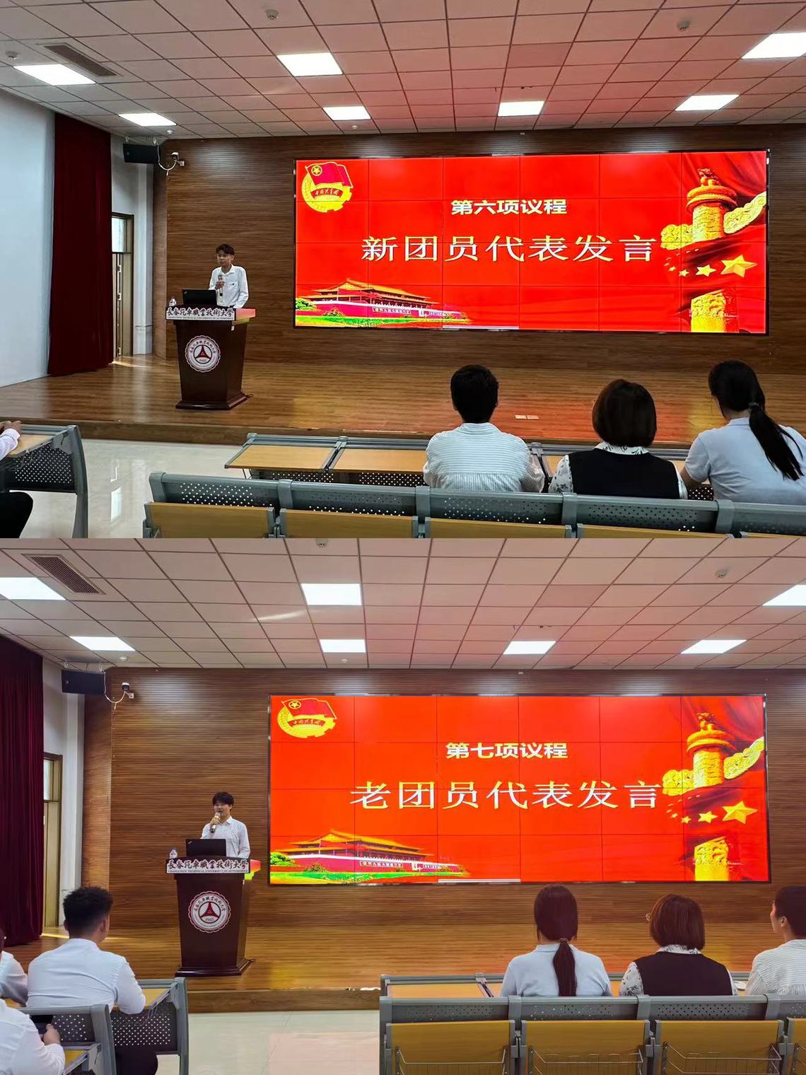 新团员代表杨珺然和优秀团员代表许传祺依次进行发言,号召广大团员牢记习近平总书记嘱托,努力做理想远大、信念坚定的模范,刻苦学习、锐意创新,厚德立身、卓越奋进,为实现中华民族伟大复兴的中国梦而勇毅前行。