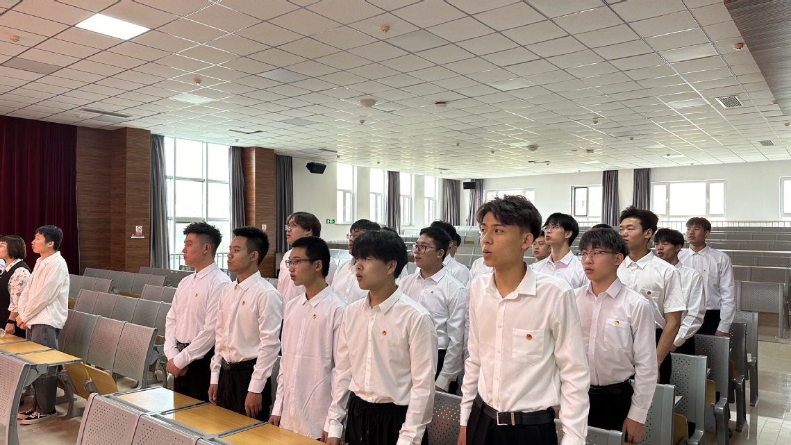 为深入学习党的二十大精神,以党建带团建为抓手,推进共青团组织政治建设,增强团员的政治性、先进性,引领广大青少年听党话、感党恩、跟党走,同时扩大共青团队伍,促进团员队伍建设,激发新团员的责任感和使命感,6月6日,汽车工程学院2024年度(上半年)新发展团员入团仪式在学院301教室举行。学院团总支书记杨宇、2023级辅导员詹佳冬、李爽、2024年度(上半年)新发展的32名团员和优秀团员代表参加本次活动。入团仪式由2023级优秀团员郑名旭主持。