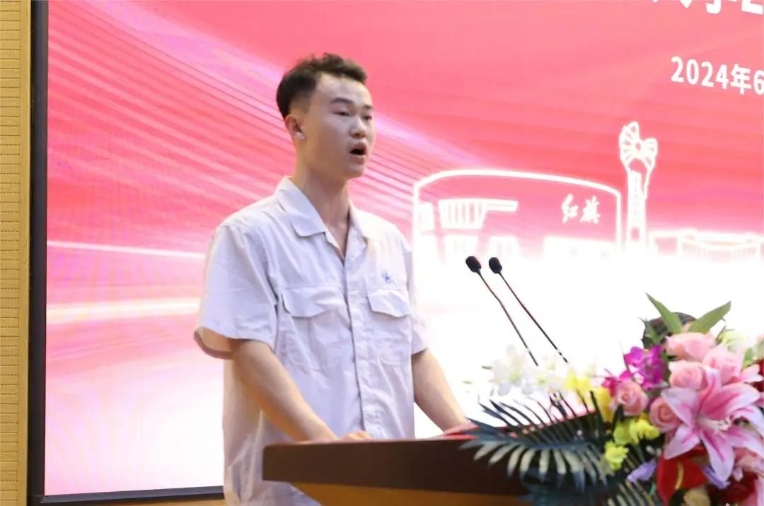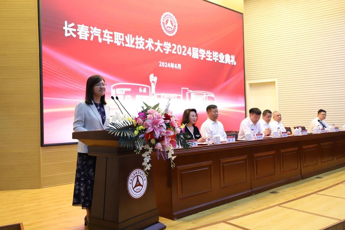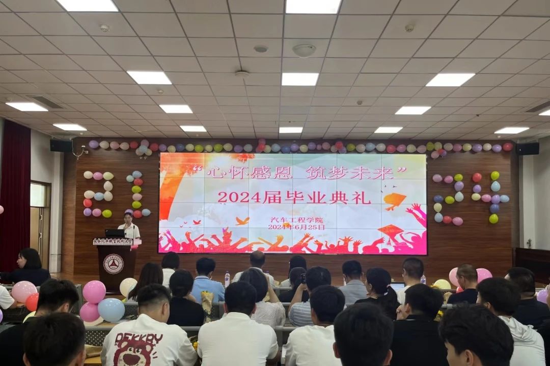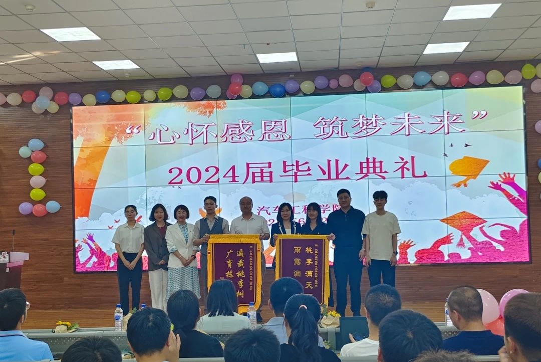 全国技术能手、汽车工程学院教师丁勇代表全体教师对2024届毕业生表达了热烈的祝贺和美好的祝愿。
