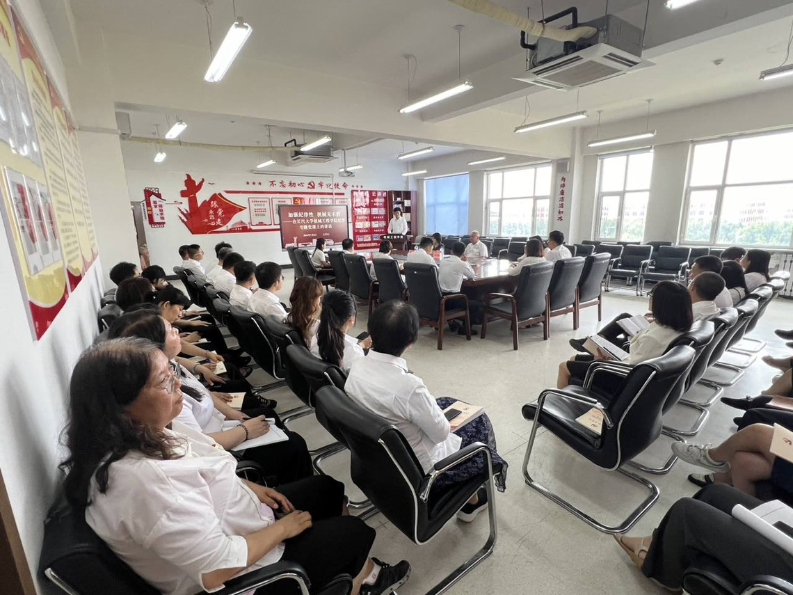 为深入学习贯彻习近平新时代中国特色社会主义思想和党的二十大精神,7月8日,学校纪委书记王学山到机械工程学院讲授专题党课,学院全体党员教师参加学习。