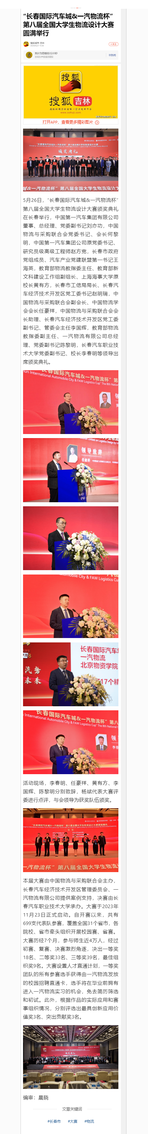 搜狐吉林——“长春国际汽车城&一汽物流杯”第八届全国大学生物流设计大赛圆满举行