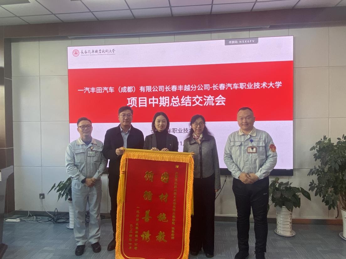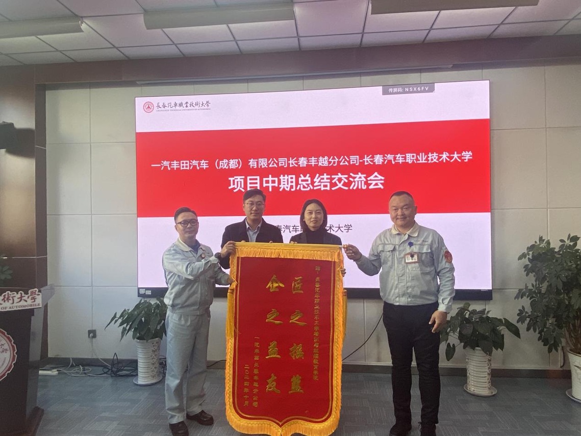 2024年我校与一汽丰田汽车(成都)有限公司长春丰越分公司(以下简称长春丰越分公司)在技能人才培养方向深度合作,策划了数控车、数控铣、CAD制图等系列培训,近日,校企双方在我校开展项目中期总结交流会。长春丰越分公司生产管理部工厂支援科科长杨仲超、培训业务负责人刘凯、我校培训与继续教育学院副院长李莹及相关教师出席会议。