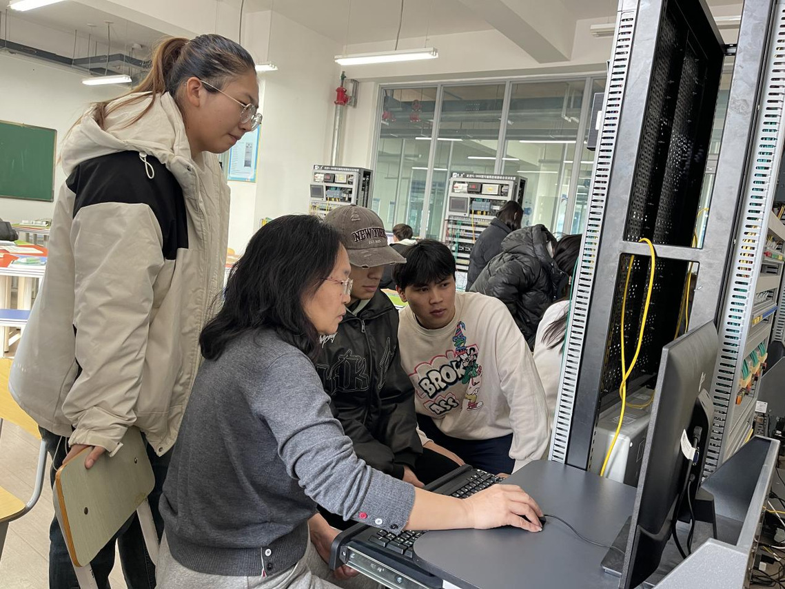 徐彬教授在PLC实训课堂指导学生完成实训项目