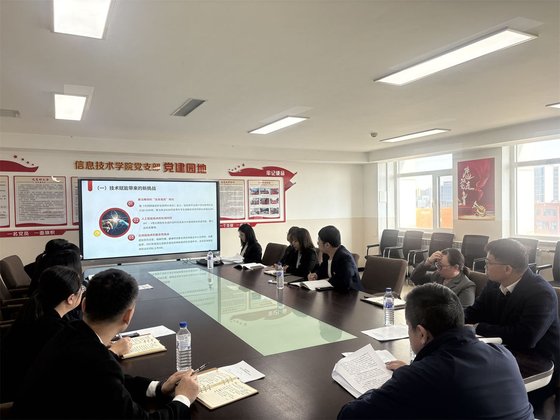 丁卓以“筑牢思想防线 勇担时代使命”为主题,结合信息工程学院教育教学工作特点,从高校意识形态工作的重要意义、面临形势、工作举措、党员责任担当等四个方面上了一节生动的党课。丁卓强调,全体党员教师要进一步提高政治站位,筑牢思想防线,做意识形态安全的“技术卫士”;要坚定文化自信,传播和弘扬中华优秀传统文化,做先进文化传播的“数字先锋”;要勇于创新,把专业教学与“网络强国”“数字中国”建设紧密结合,做网络空间的“创新尖兵”,共同筑牢数字时代的思想防线,为建设行业性、开放式、创新型的中国特色、世界一流职业技术大学而努力奋斗。