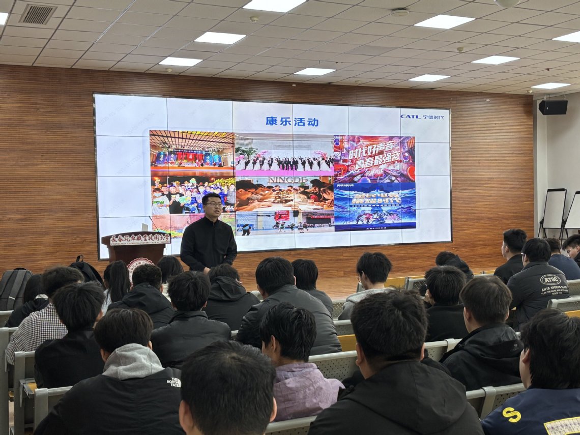 宣讲会上,金大贺向学生们详细介绍了公司的基本情况、发展历程、企业文化以及未来发展规划。他通过生动的案例和翔实的数据,展示了宁德时代在专业领域的雄厚实力和广阔前景,重点介绍了宁德时代“修己、达人、奋斗、创新”的企业核心价值观,使同学们对公司的文化理念与发展情况有了更深入的认识。