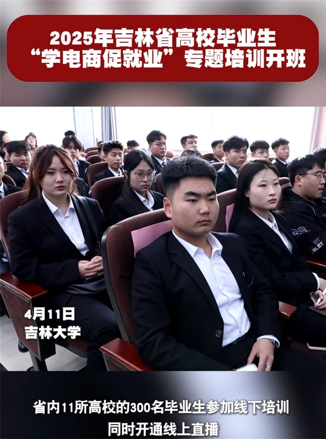 4月11日,2025年吉林省高校毕业生“学电商促就业”专题培训首场培训班在吉林大学隆重开班。我校20名优秀学子代表与来自吉林大学、长春理工大学等省内10所高校的300余名毕业生齐聚一堂,共同参与了这场赋能职业发展的知识盛宴。