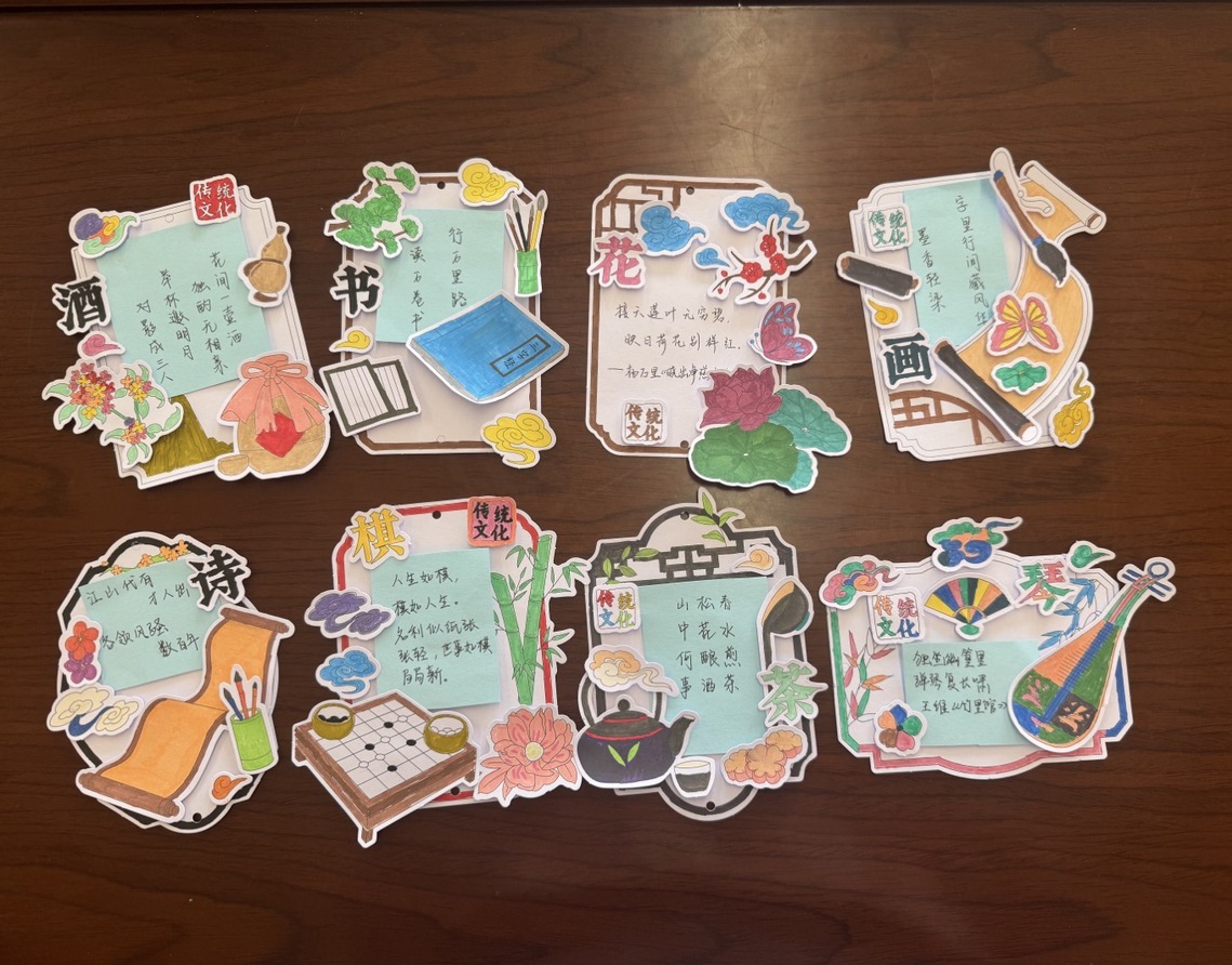 创意书签制作,文化传承显匠心。在“创意书签制作”活动中,同学们充分发挥想象力,将诗词、绘画等元素融入设计,打造出一枚枚精美的书签,展现了青年学子对文化的热爱与传承。