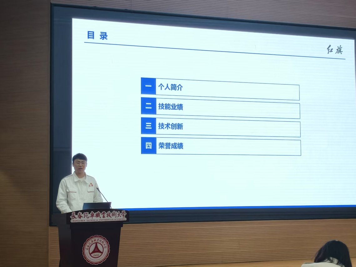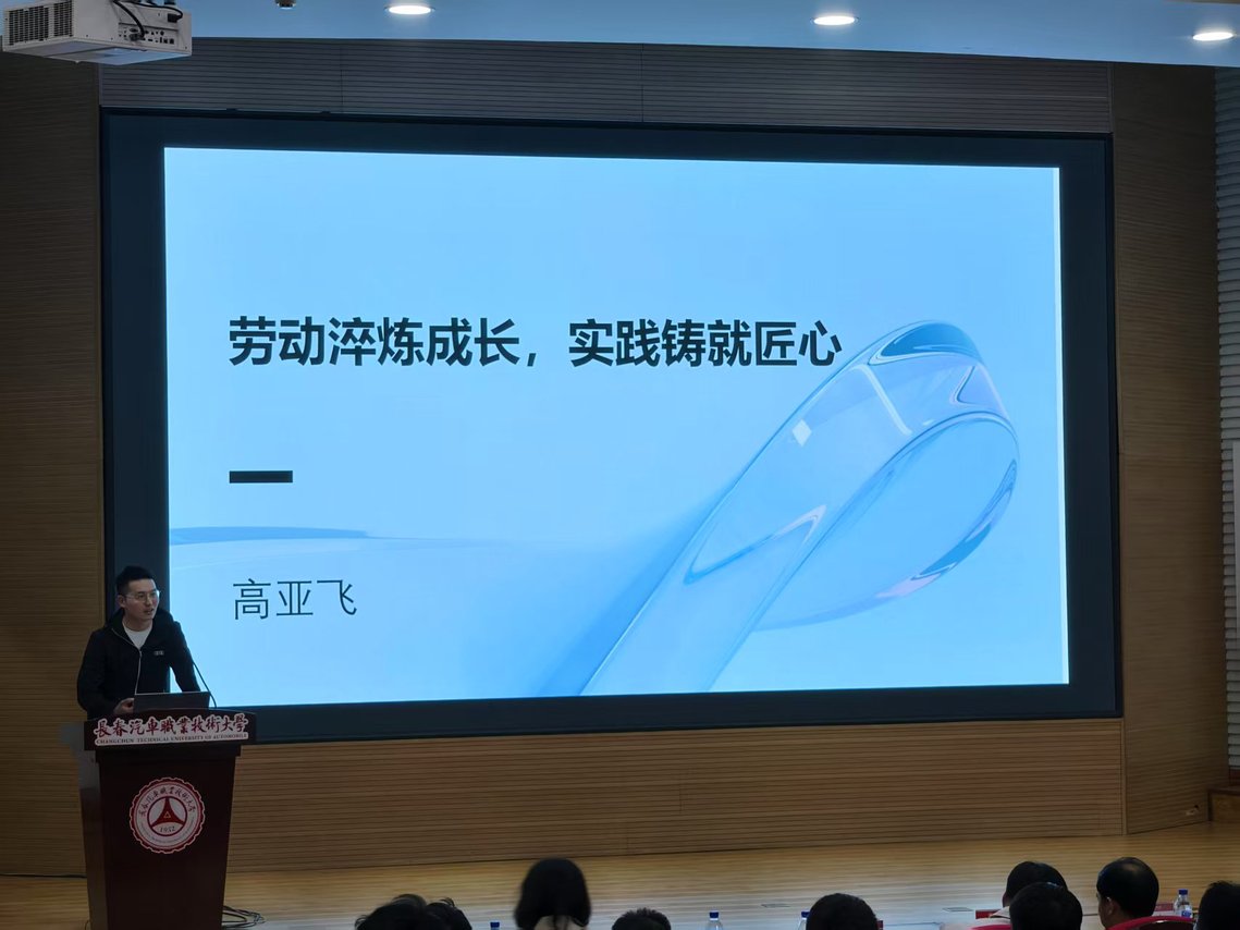 四位优秀毕业生结合各自深耕的工作领域,毫无保留地分享了他们一路走来的成长经历与心路历程。时敬龙分享了自己的学习与工作经历,强调匠心精神与持续奋斗的重要性,激励大家砥砺奋进、塑造更卓越的自己。付国栋勉励青年学子要树立与时代同频的理想,既要志存高远,更要脚踏实地,用劳动践行责任担当。董钊宏结合汽车研发实践,鼓励青年学子树立劳动精神,在专业上追求精益求精,在行动中做到知行合一,在实践中锤炼本领。高亚飞从实践出发,寄语青年学子在创新中传承匠心,在劳动实践中培育进取精神,勇迎挑战,书写精彩人生。