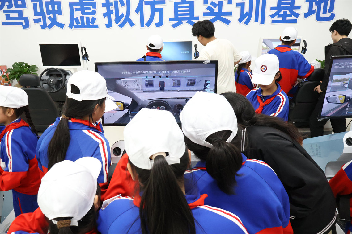 学生在驾驶模拟虚拟仿真实训基地体验