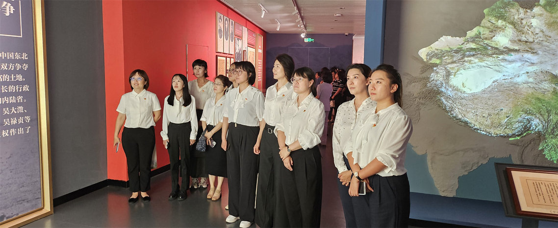 为深入贯彻习近平文化思想,全面落实省委关于“讲清讲活 讲好吉林故事”工作要求,8月27日,思想政治理论教研部党支部前往吉林省近现代史展馆,开展“讲好吉林故事 赓续红色血脉——吉林省近现代史”学习教育主题党日活动,为思政教育工作注入鲜活历史养分。本次活动由思想政治理论教研部党支部书记苏蔷带队,全体专、兼职党员教师参加。